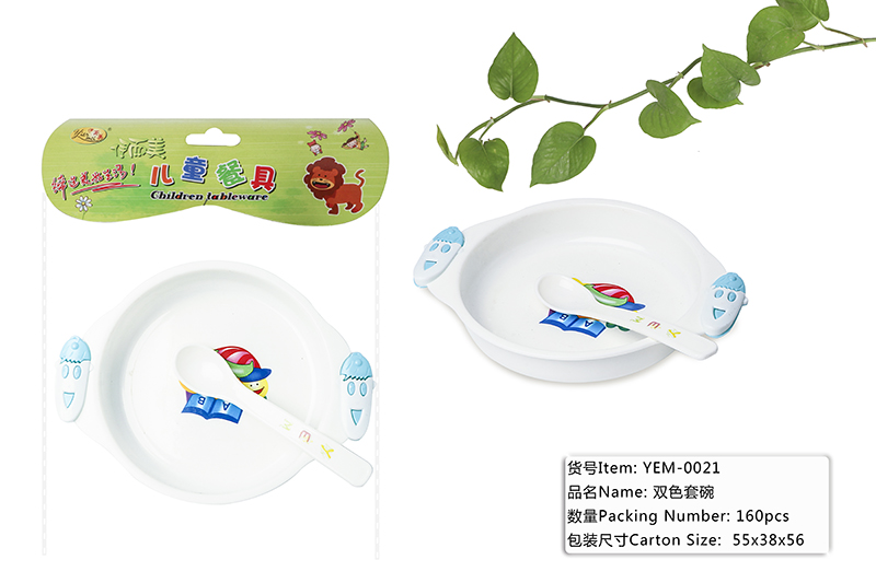 0021双耳儿童餐具仿瓷密胺碗勺套装 卡通餐具婴儿碗儿童碗160/箱八B17-2-3