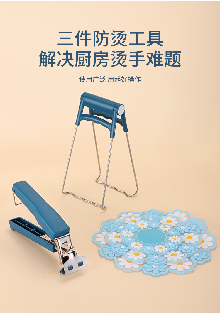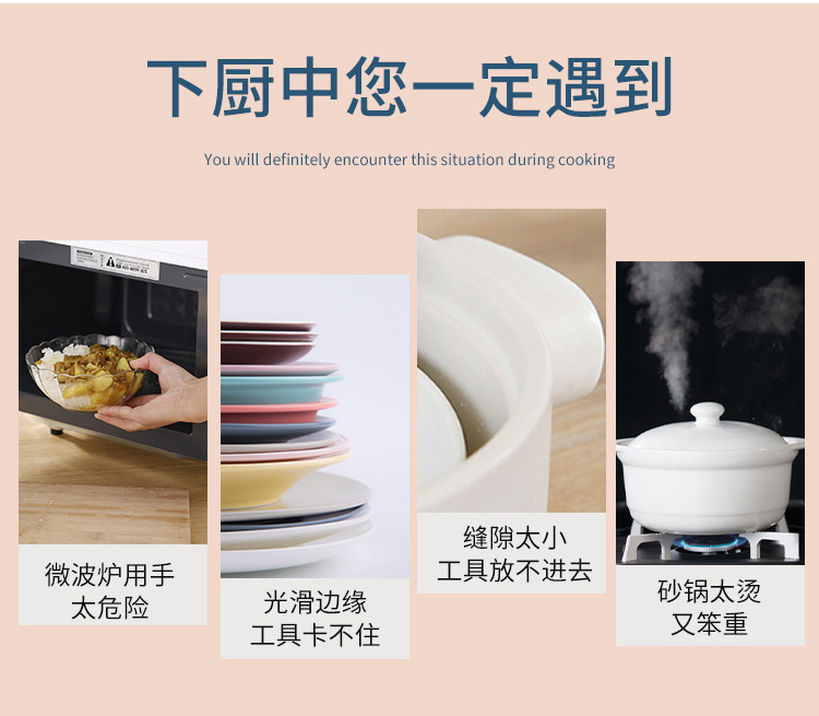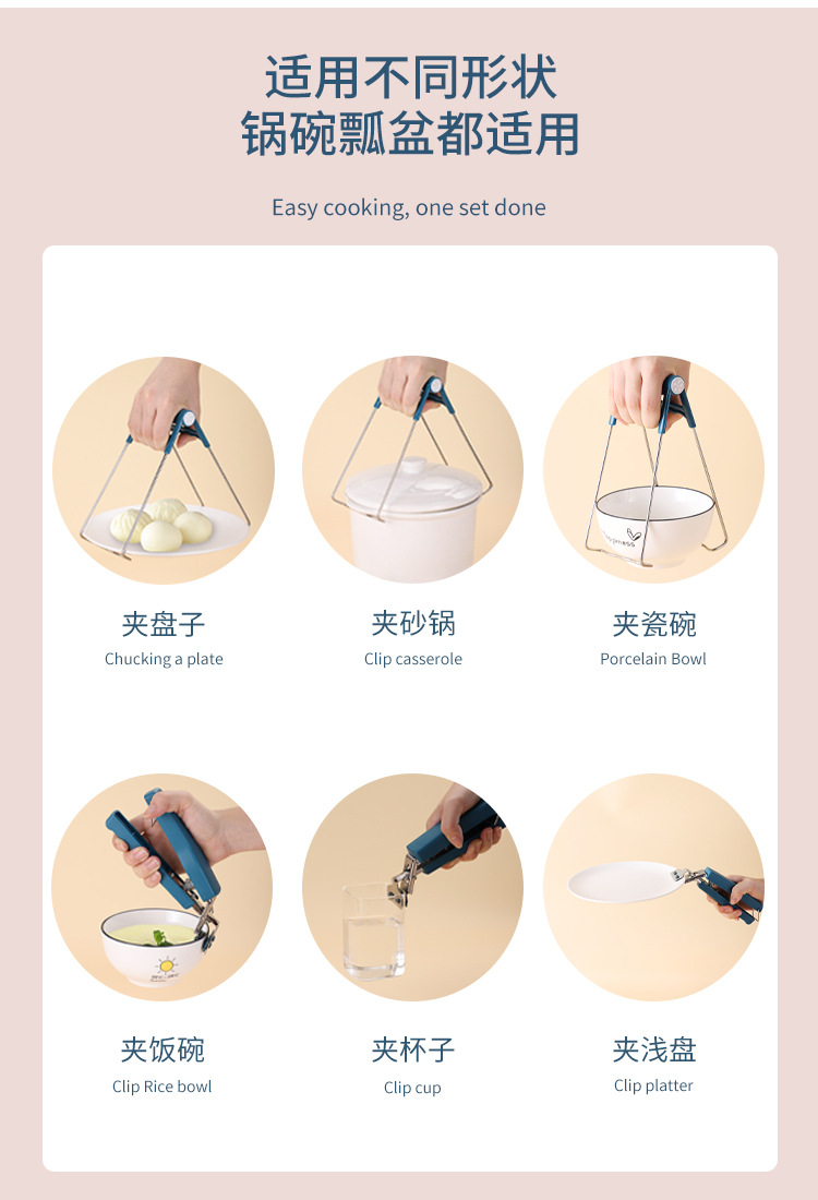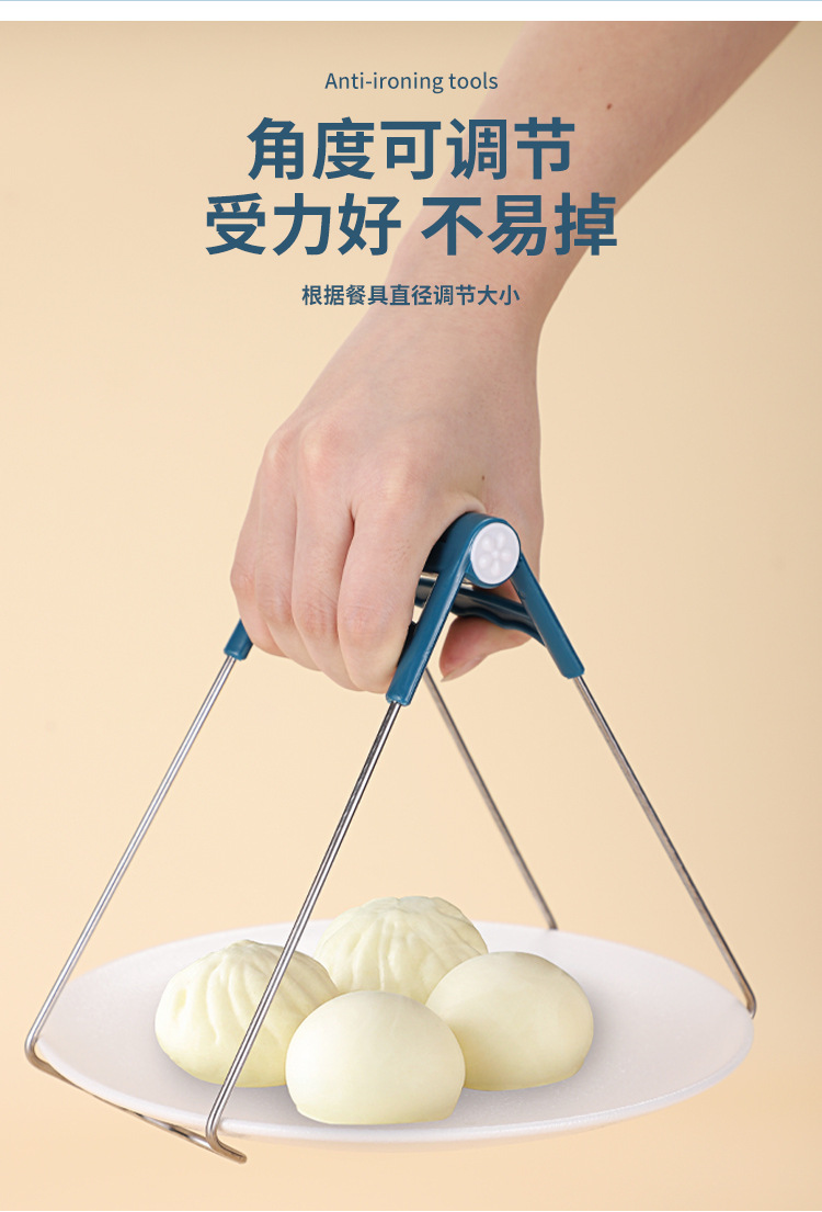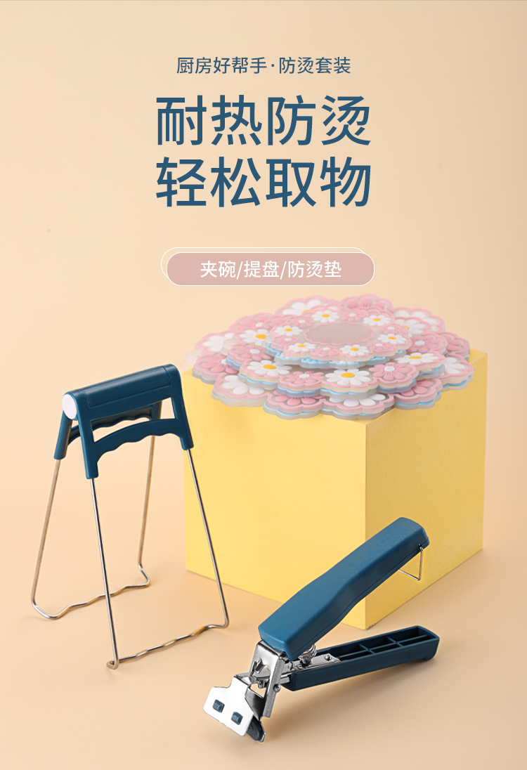 6448钢柄防烫取碗夹子2件套 隔热垫耐高温碗碟夹厨房提盘夹防滑夹碗器套装B42-4-1
