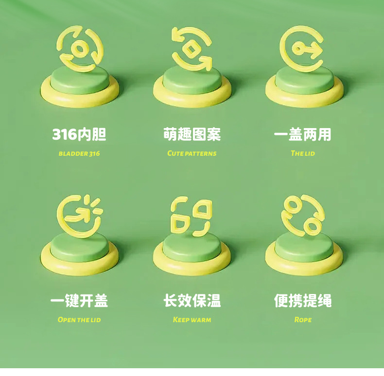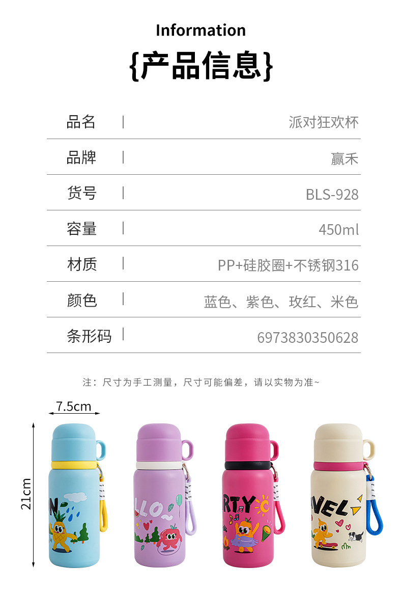 ZM-8171派对狂欢杯316不锈钢卡通水杯儿童保温杯450ML50只/箱六B43-4-4