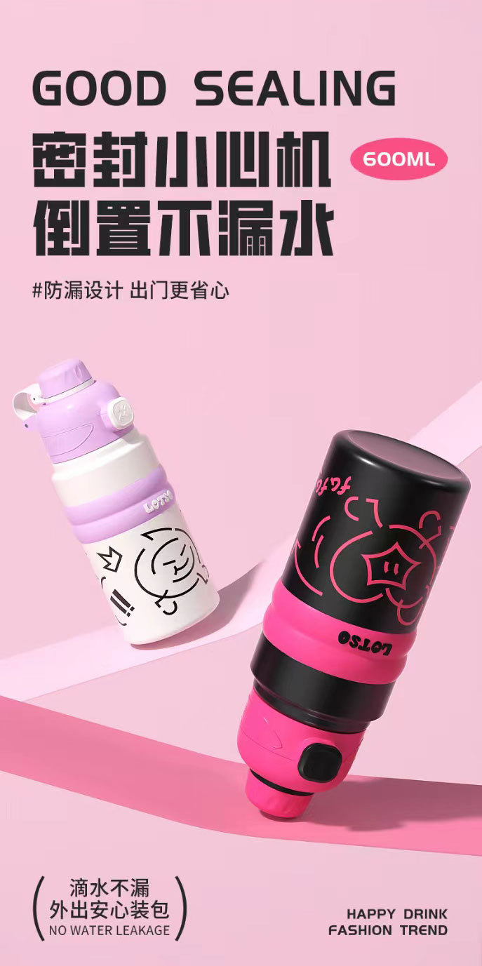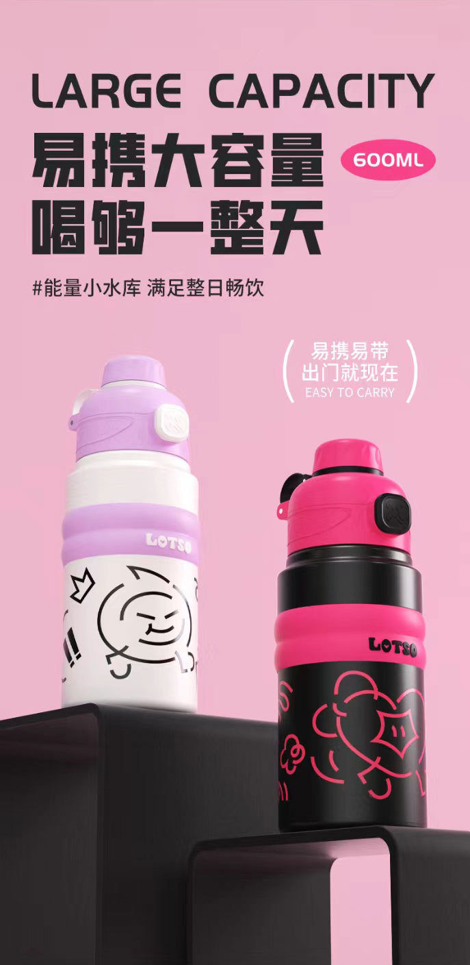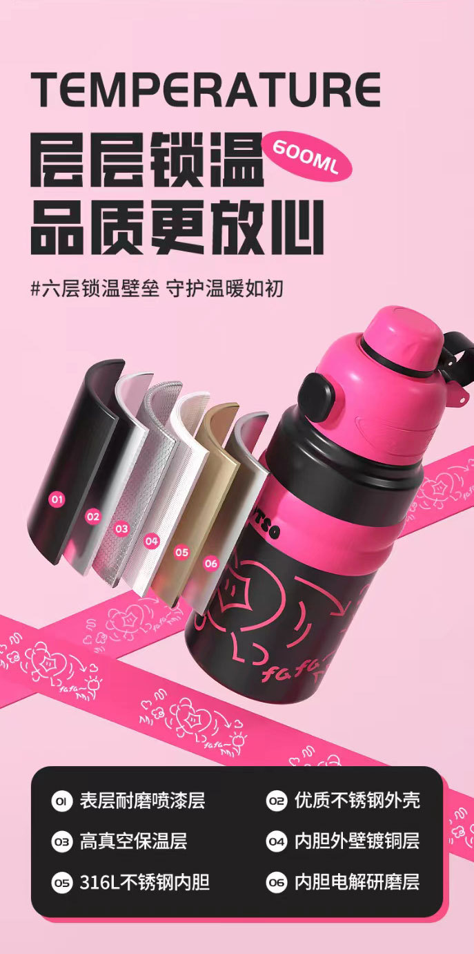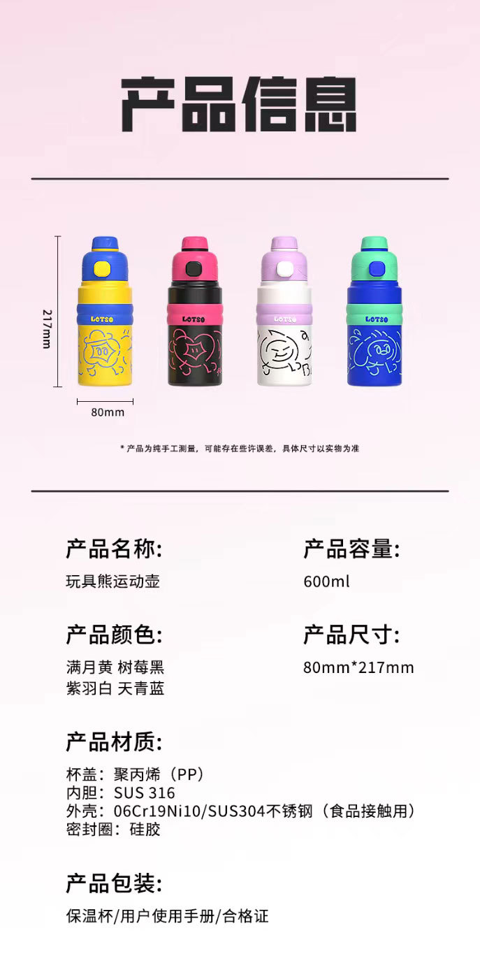 ZM-8170玩具熊手提弹跳保温杯316内胆运动水杯大容量直饮水杯600ML50只/箱三ZBJ6-4-4