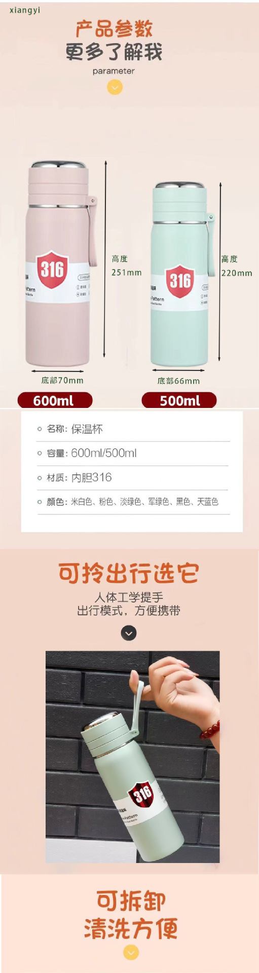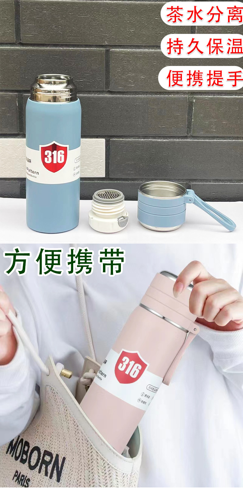 (50只/箱)ZM-8150全钢吊带杯316提手杯 便携600ML茶水分离大容量车载水杯三ZBJ6-3-4