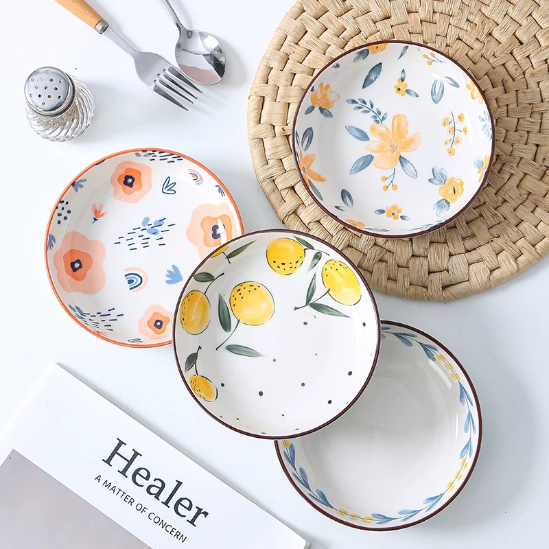 (一级)8.3寸全彩中式复古家用陶瓷盘子圆盘菜盘-花儿朵朵 60/件六A8-1-1