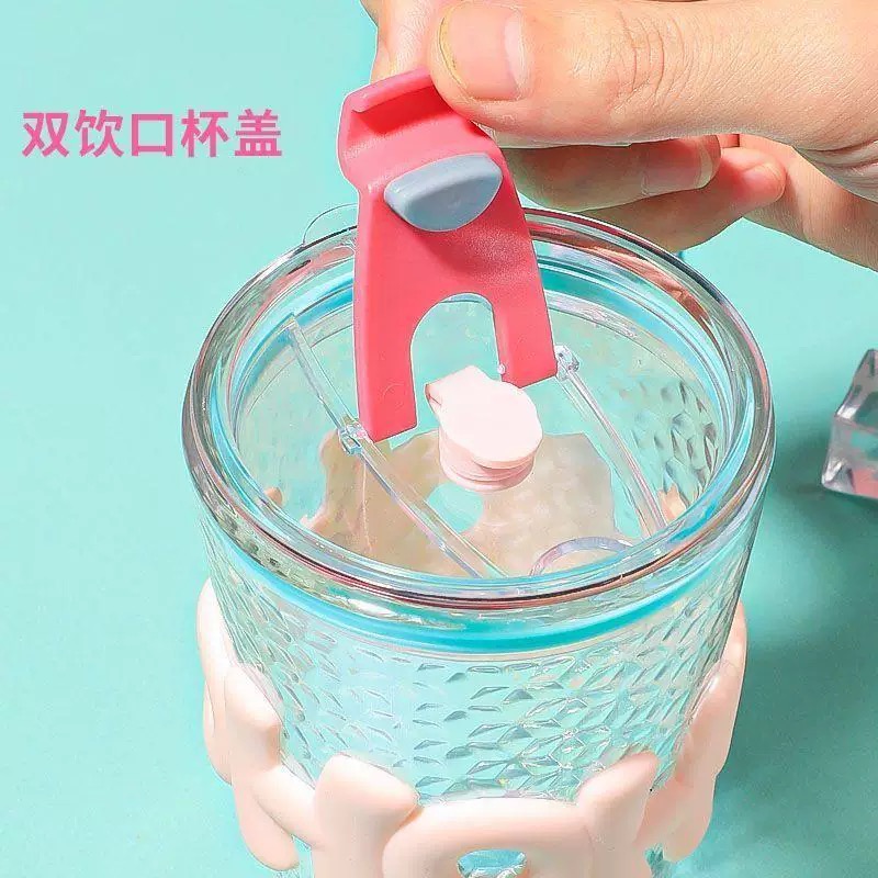 101836玻璃碎冰吸管杯大容量高颜值炫彩水杯 58/件六B10-1-1