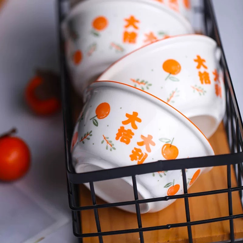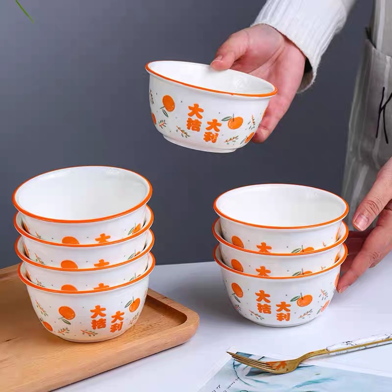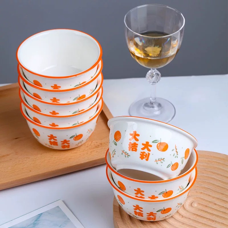 (特价)4.5寸甜心饭碗陶瓷碗家用米饭碗-大桔大利 120/件六A7-1-1