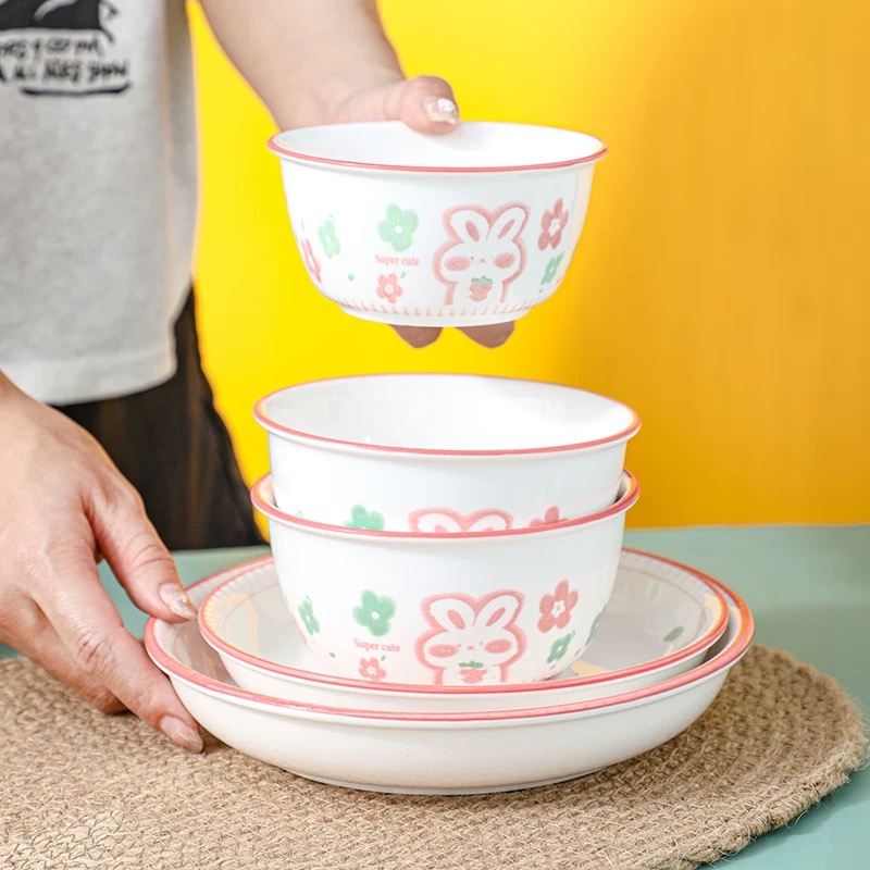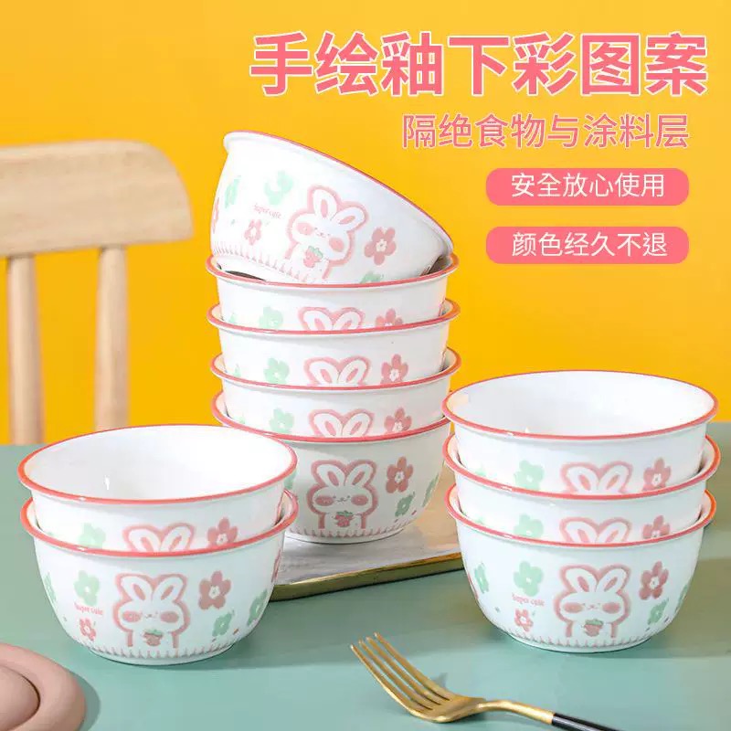 (特价)4.5寸甜心饭碗陶瓷碗家用米饭碗-萌萌兔 120/件六A2-6-1