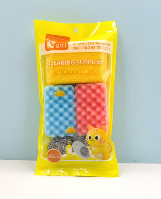 QMJ-2688两片中彩+两片波浪海绵+两个钢丝球清洁组合 150/件八B10-4-3