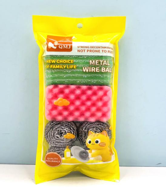 QMJ-2610两片条纹+一片波浪海棉+四个钢丝球清洁组合 160/件六B10-4-3
