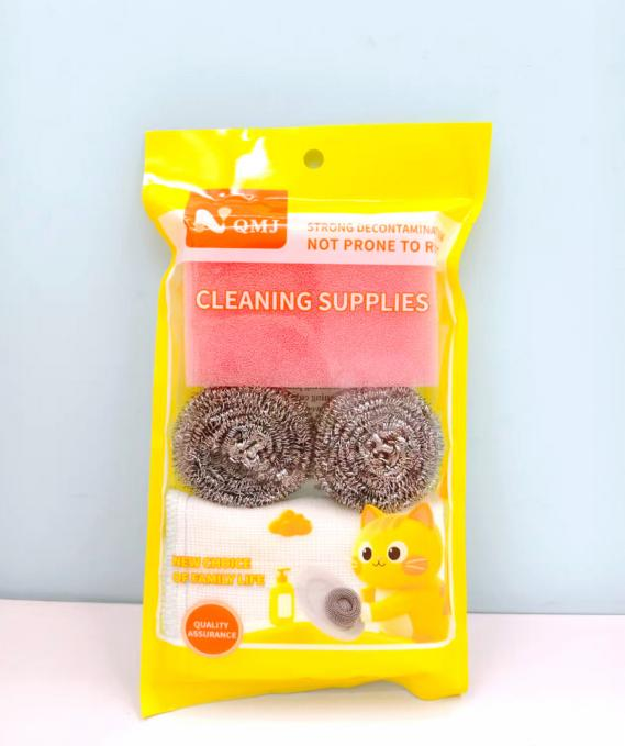 QMJ-2687一片丝瓜海棉+两个钢丝球+一片洗碗巾清洁组合 200/件六1号ZBJ1-2-2