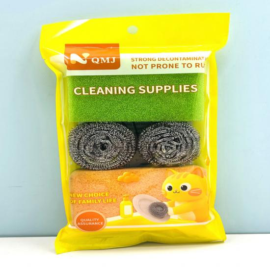 QMJ-2687一片丝瓜棉+两个钢丝球+一橙色海藻海绵清洁组合 200/件八B10-3-上