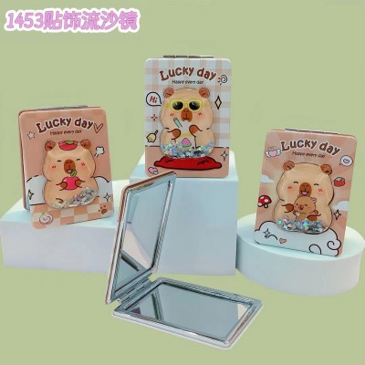 1453迷你可爱折叠双面流沙镜随身携带美妆镜48/件八A6-1-2