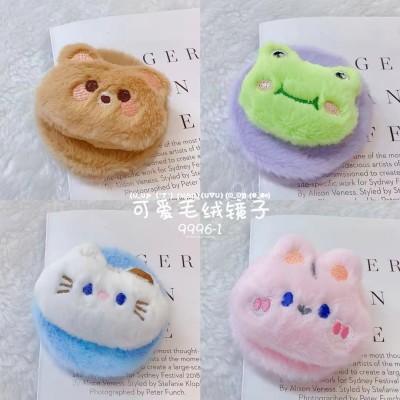 9996女生卡通毛绒公仔双面镜便携迷你化妆镜60/件