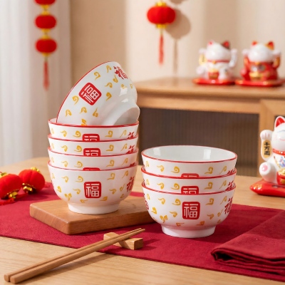 2026新款福字餐碗系统高档釉下彩陶瓷简约设计过年必备120/件2502 八2号ZBJ3-3-1