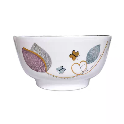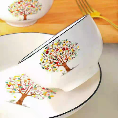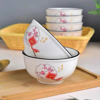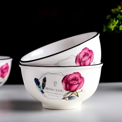 (一等)6寸面碗陶瓷家用大碗吃面条碗加厚防烫碗创意餐具—粉花60个/件八A4-2-1
