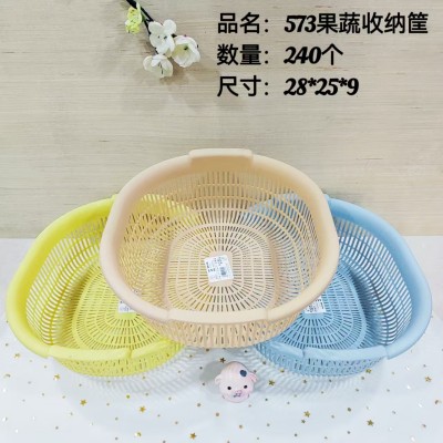 蔬菜筐三件套965加厚洗菜盆三件套圆形镂空洗菜盆水果篮塑料沥水筛淘米洗米筛菜筐24/套