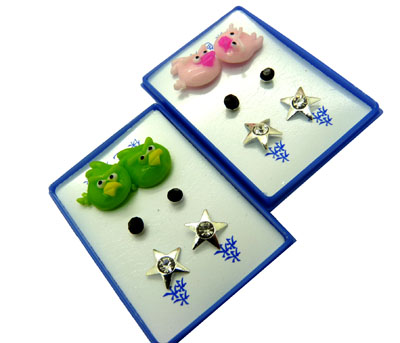 甜美时尚淑女气质镶钻三件套耳钉耳饰2013新款 愤怒的小鸟形状 耳钉三件套C3-2-4