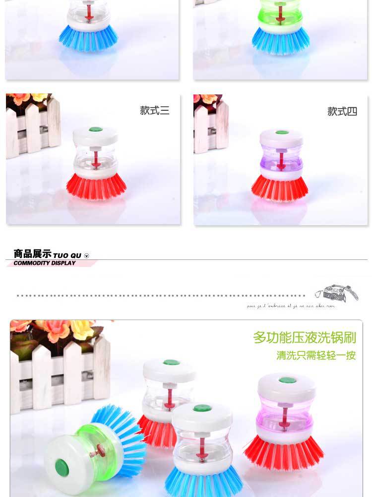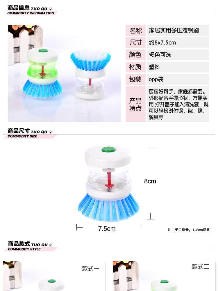 多用压液洗锅刷/洗碗刷多功能洗碗洗洁精清洁 护理厨房用刷 -420/件6/包B32-3-3
