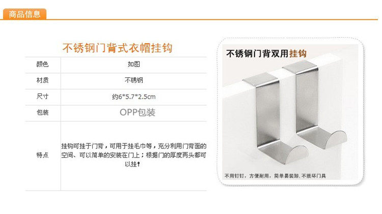 秒杀3515门背式不锈钢挂 挂钩挂钩 2个装衣帽门后挂钩无痕免钉挂钩八B43-4-3