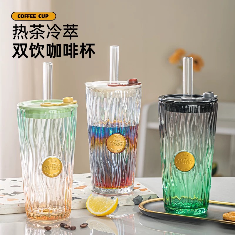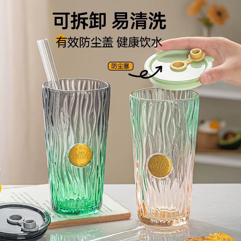 101896炫彩锤纹高颜值玻璃杯轻奢吸管杯 70/件六B11-2-1