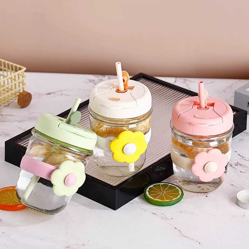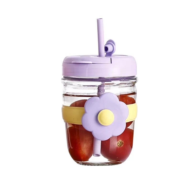 XY-0886花朵吸管杯玻璃杯牛奶杯咖啡果汁杯 72/件六B11-4-1