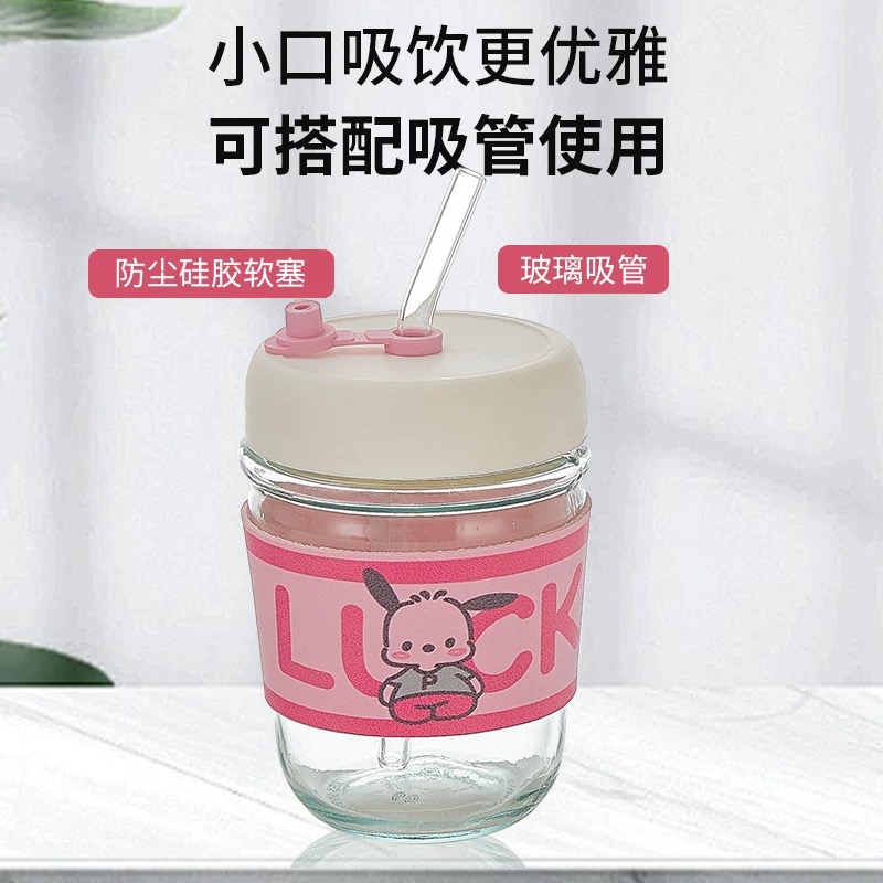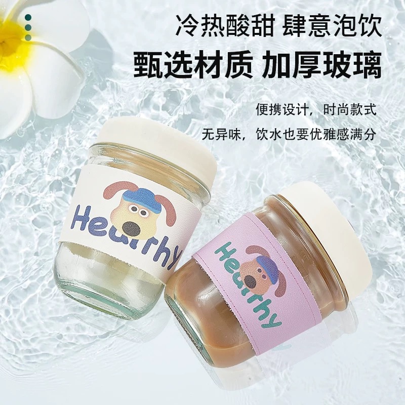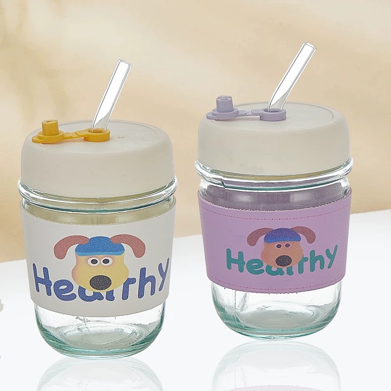 XY-826皮套吸管水杯玻璃杯高颜值卡通可爱可乐杯 70/件六B10-1-1