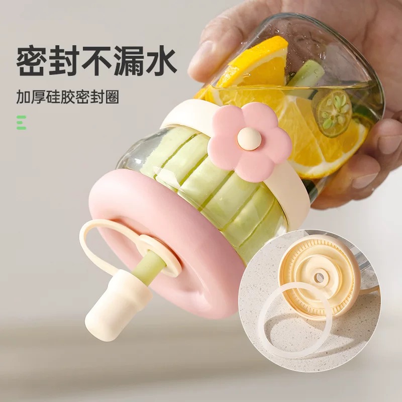 XY-0880清新花朵吸管杯新款玻璃杯牛奶杯咖啡果汁杯 68/件六B12-1-1