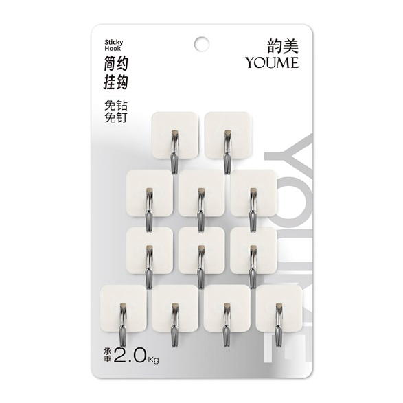 12个装YM-8003超值装简约方形粘钩160件20卡盒