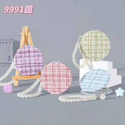 9991小香风双面镜圆形钥匙扣挂件化妆镜便携包包挂饰镜24/件