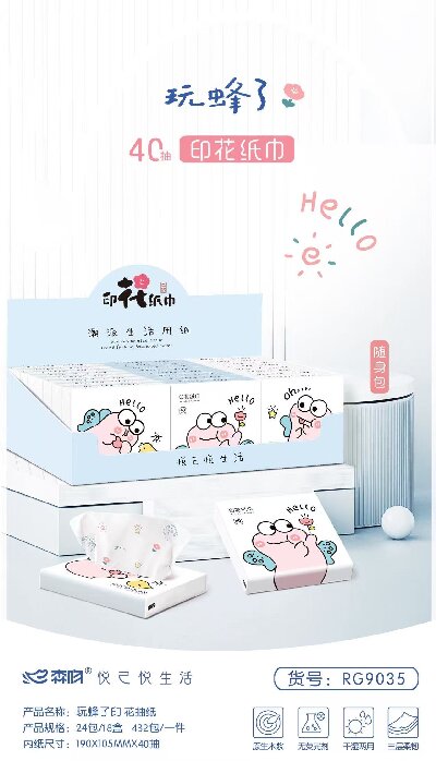 RG9035森吻玩蜂了印花抽纸便携式随身清洁迷你抽纸原生木浆干湿两用432包/件