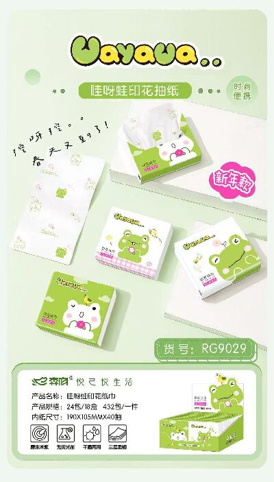 RG9029卡通原生木浆手帕纸印花抽纸便携式餐巾纸干湿两用432包/件