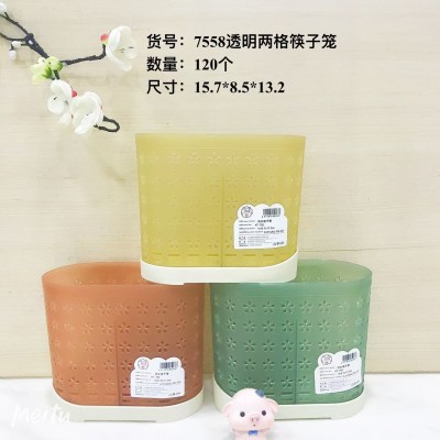 7558透明沥水筷子笼透明两格分格小碎花筷子笼筷子筒桌面厨房收纳盒防霉带底座120/个