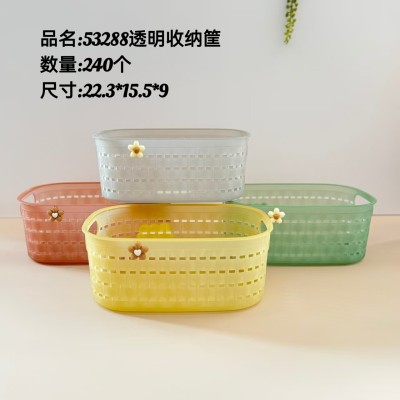 透明方藻蓝99088(贴花)桌面透明编织收纳筐杂物玩具收纳篮浴室化妆品置物篮80/个