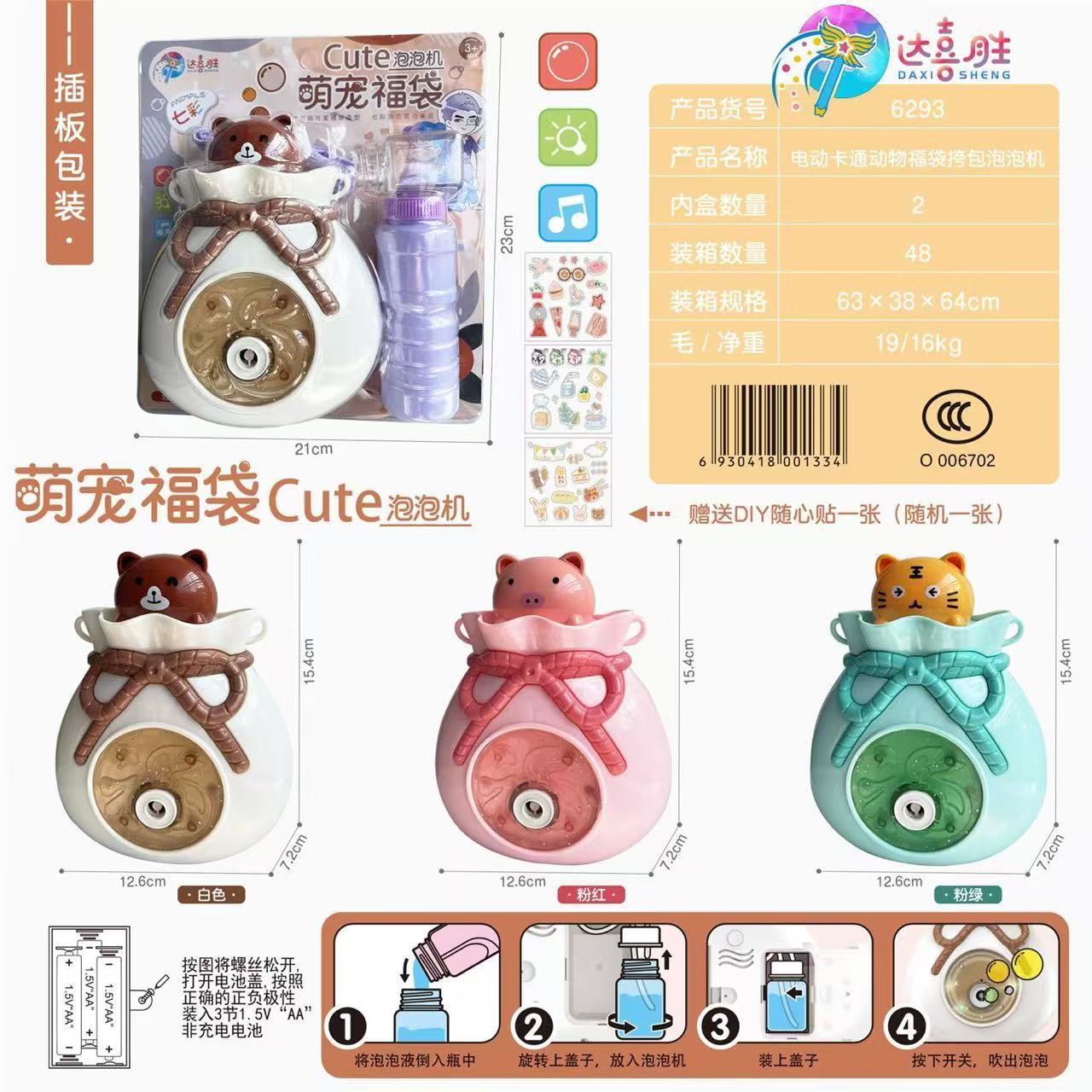 DXS6293电动卡通动物福袋挎包泡泡机 48/箱八B2-2-3