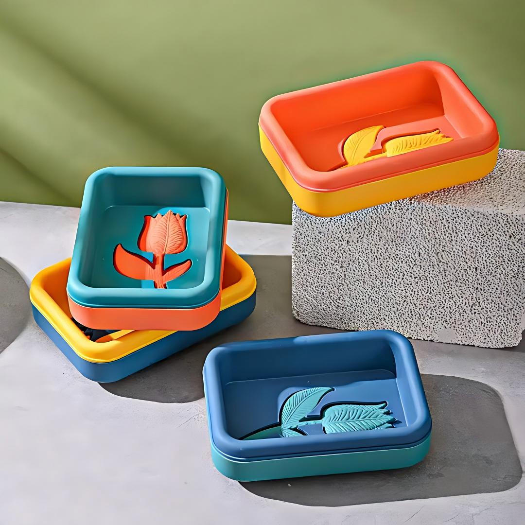 6818-(2个装)时尚双色分层卡通花朵沥水皂盒 120/箱