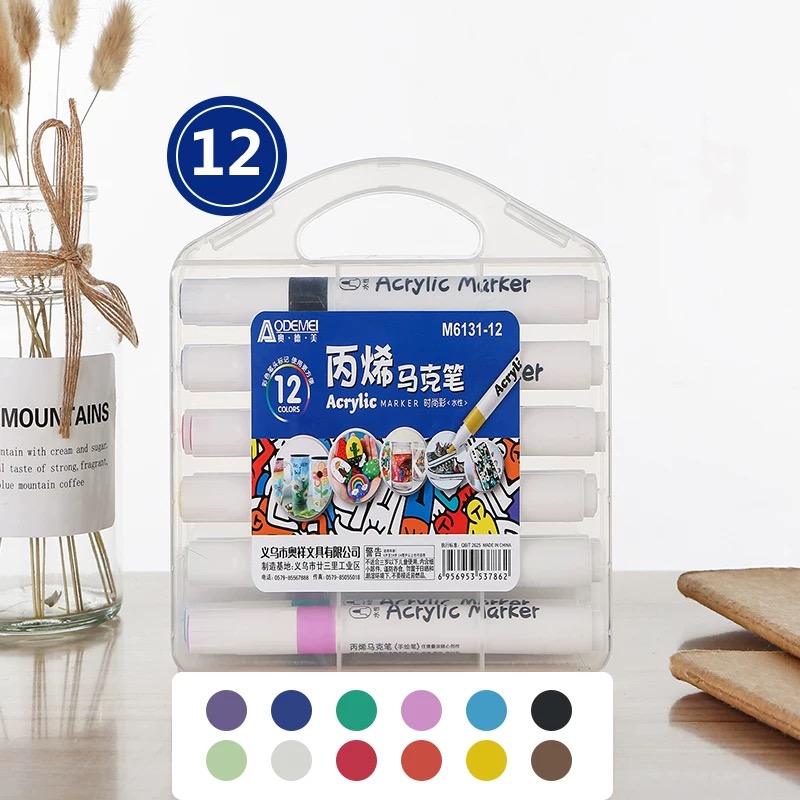 M6131-12色丙烯马克笔学生水彩笔安全可叠色不透纸涂鸦绘画笔 144/箱