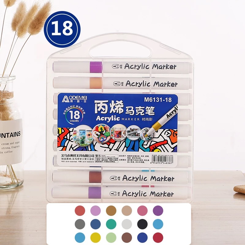 M6131-18色丙烯马克笔学生水彩笔安全可叠色不透纸涂鸦绘画笔 96/箱