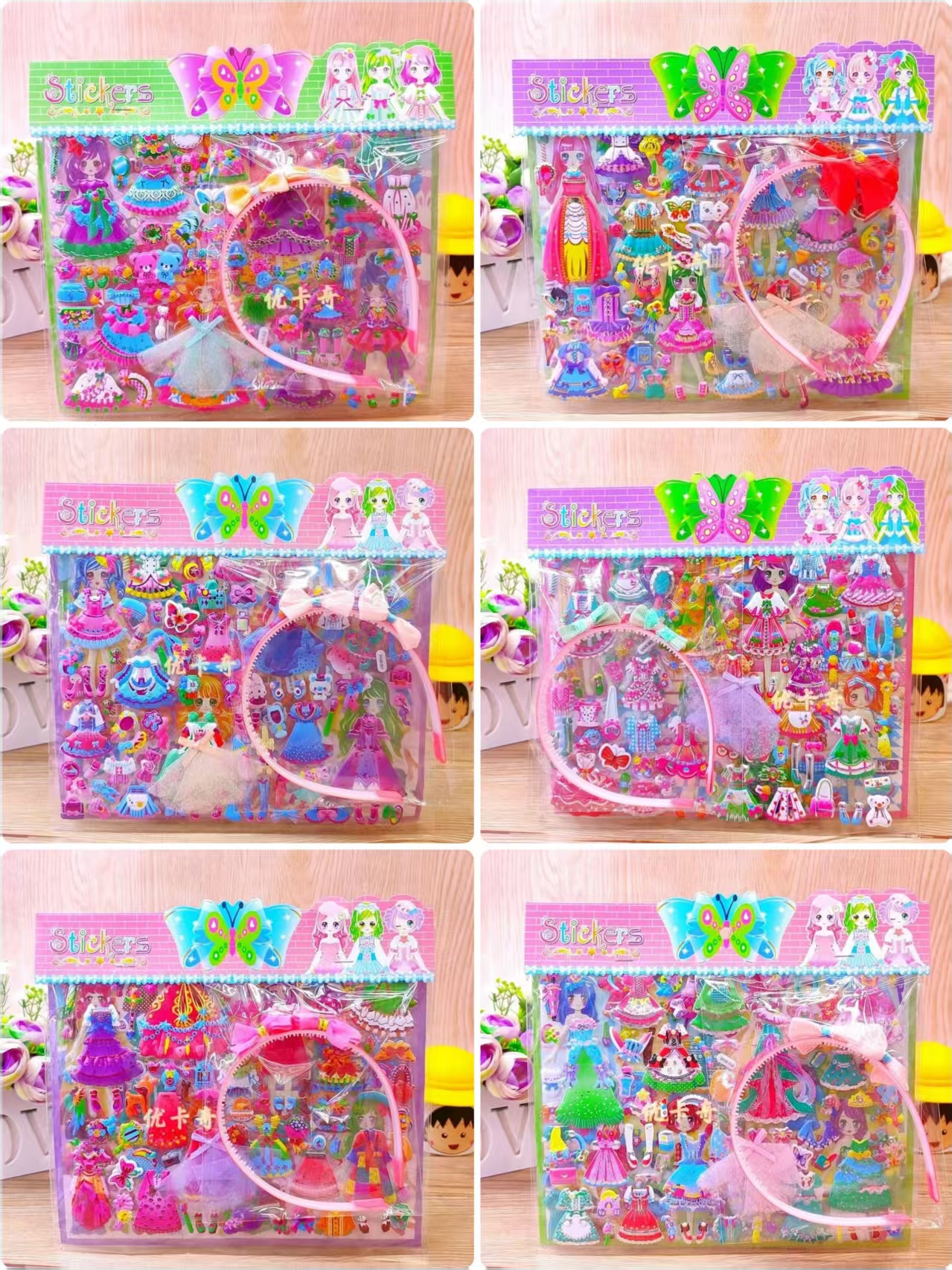 9A98换装女孩泡泡贴贴蕾丝珍珠发夹冰雪奇缘公主贴